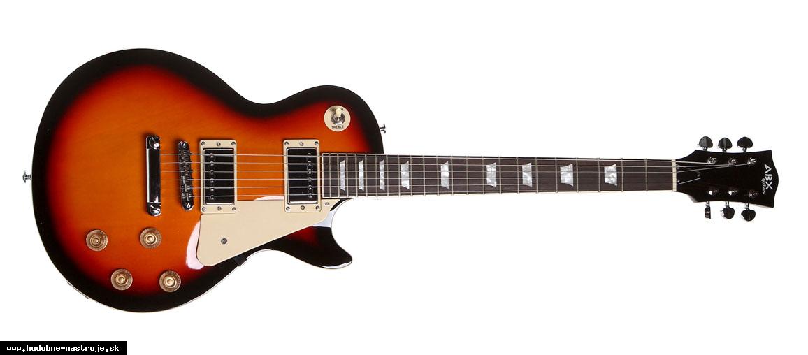 Elektrická gitara model Les Paul, telo lipa, javorový krk, palisandrový hmatník, snímače 2x Humbucker, 3-polohový prepínač, Die-cast mechanika, farba sunburst